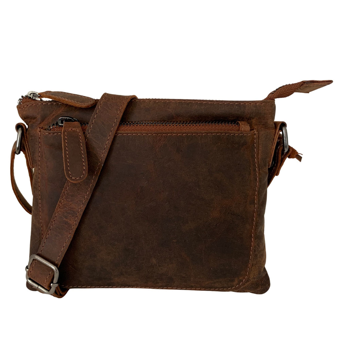 Genuine leather shoulder bag with a stylish used look. Features a spacious two-part main compartment...