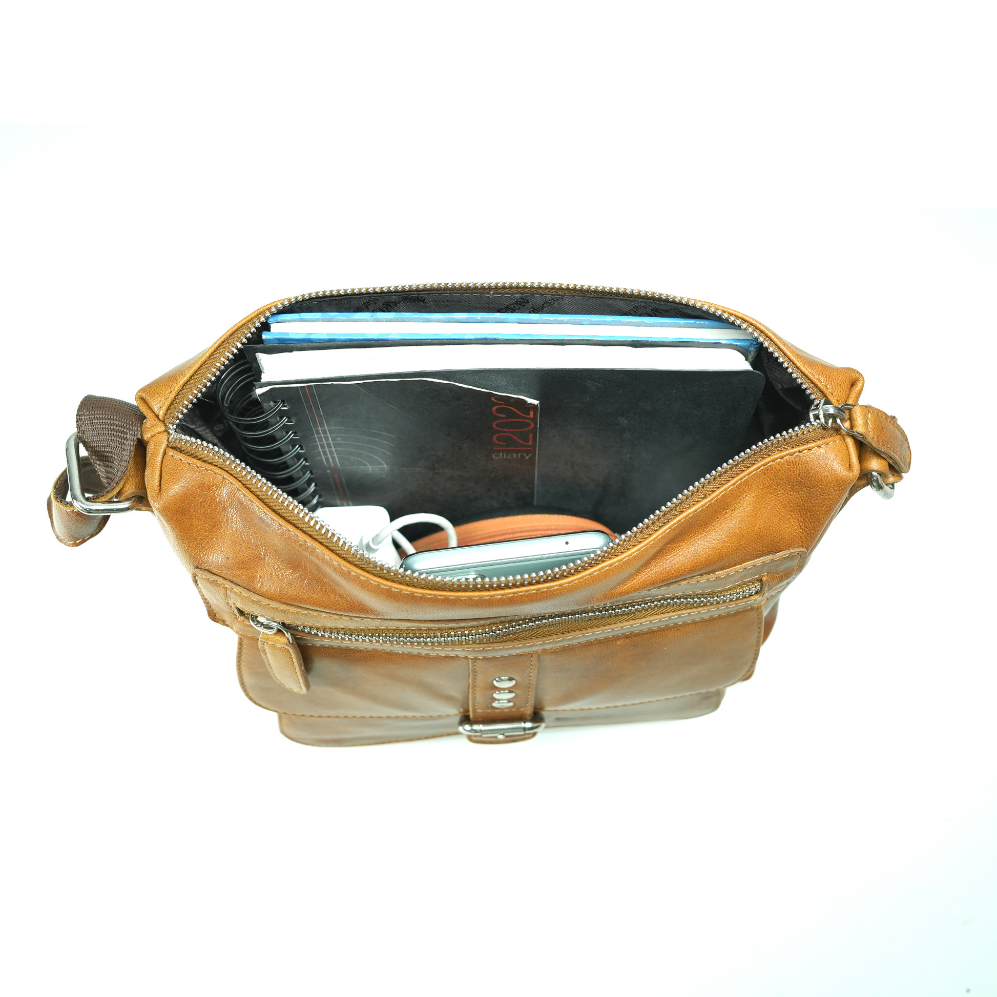 - Spacious main zip compartment