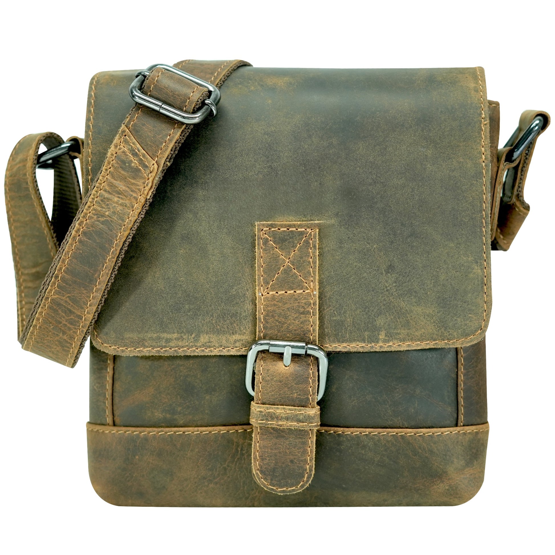 - Adjustable leather strap for crossbody or shoulder wear