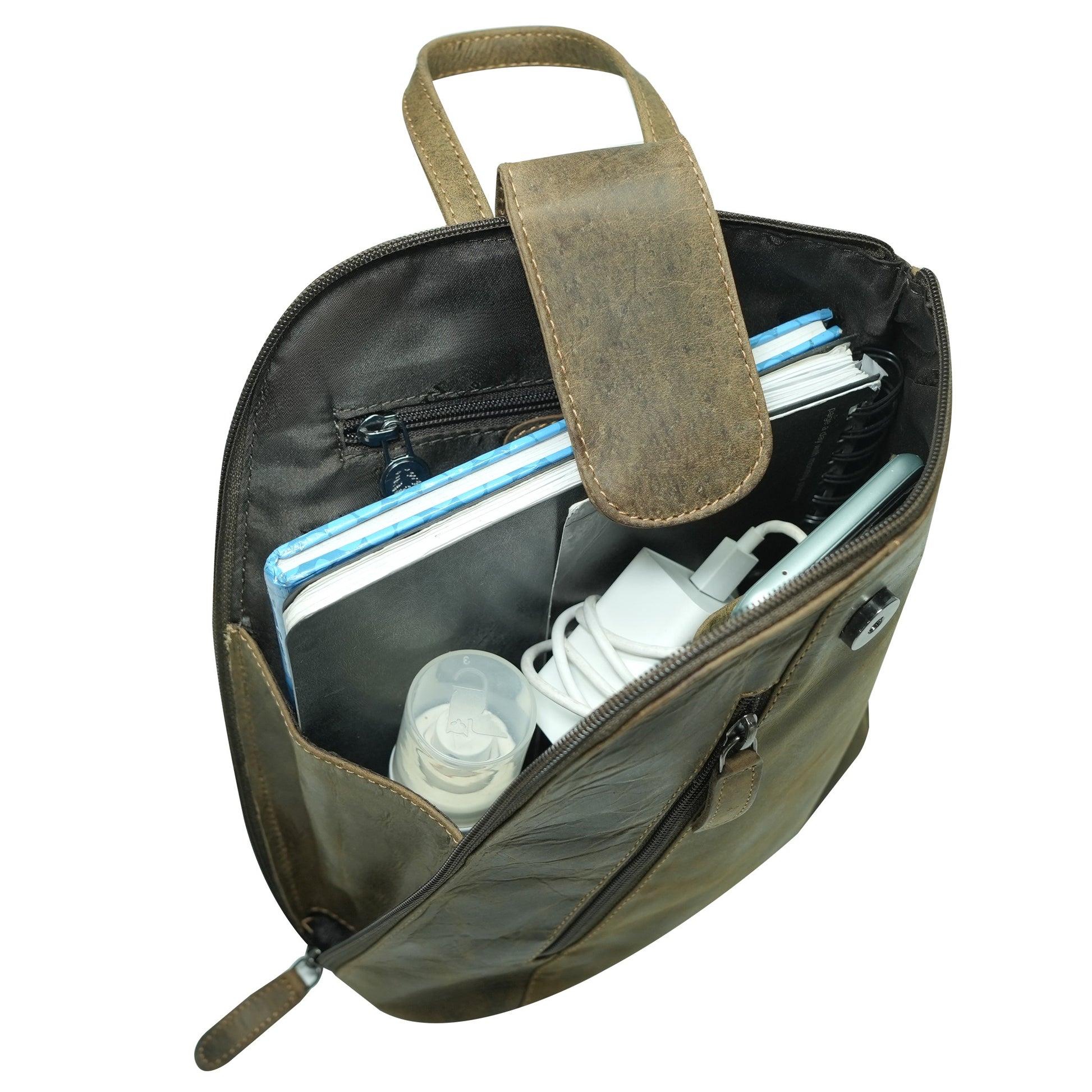 - Magnetic flap closure + top zip