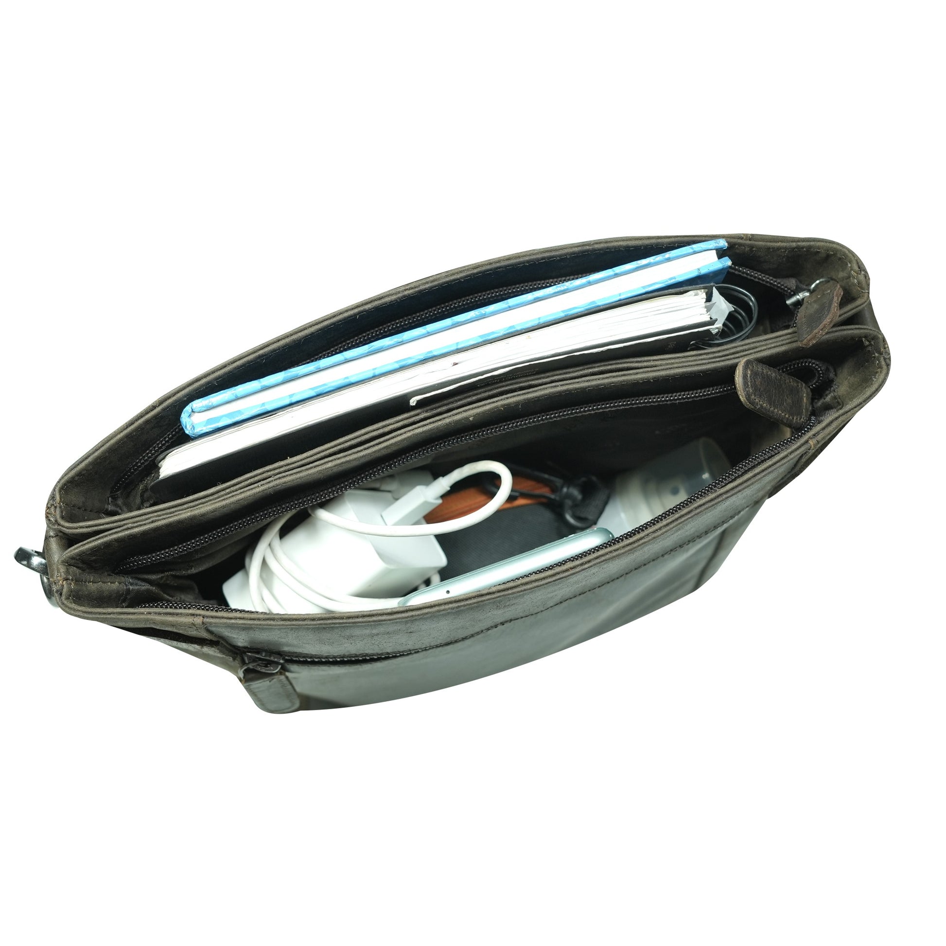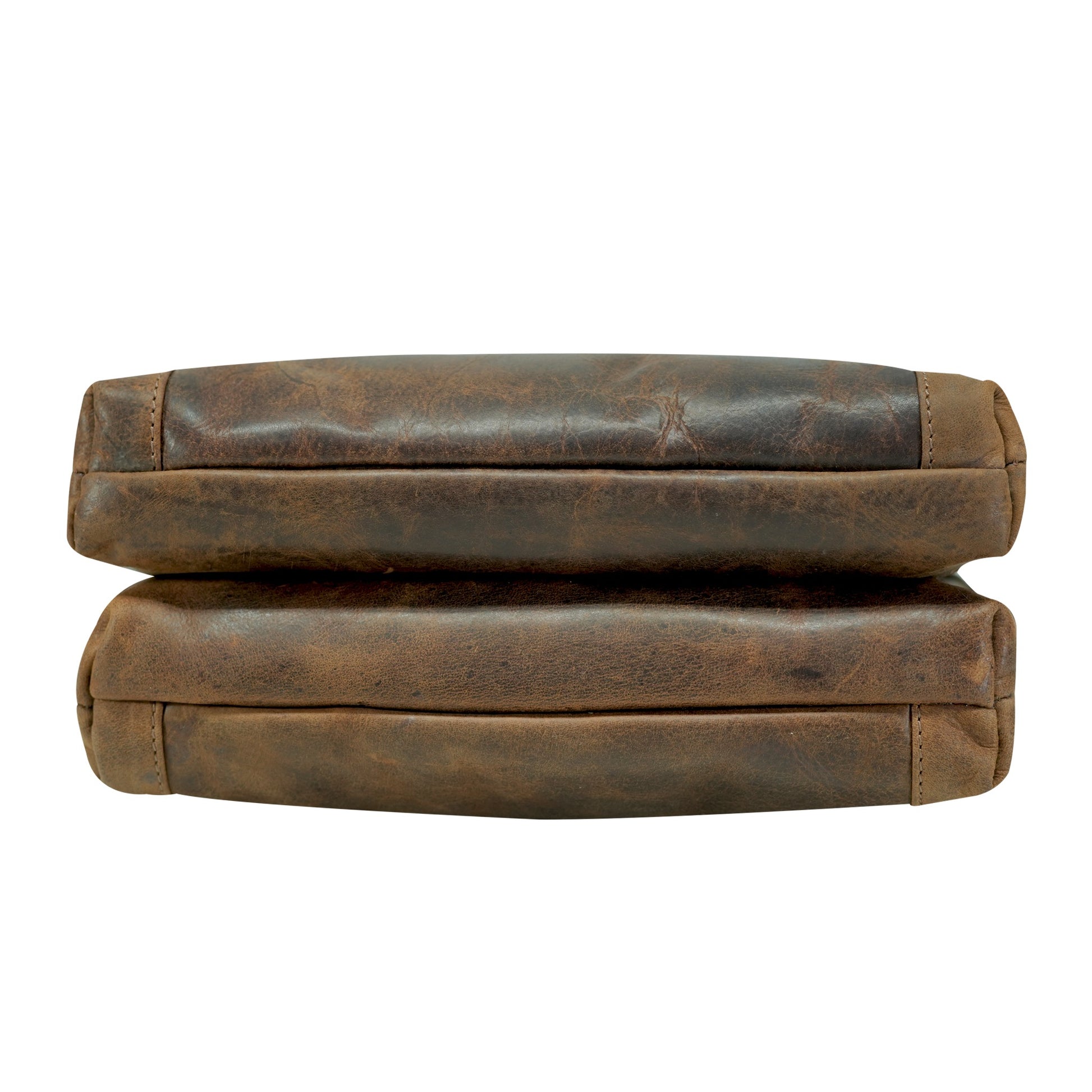 Stay organised on the go with this leather crossbody bag, crafted from genuine leather. It features two spacious compartments, internal zip pockets, and a secure top zip closure, perfect for work, travel, or everyday errands. With a fully adjustable strap and vintage-style finish, it’s the ideal unisex crossbody for both style and function.
