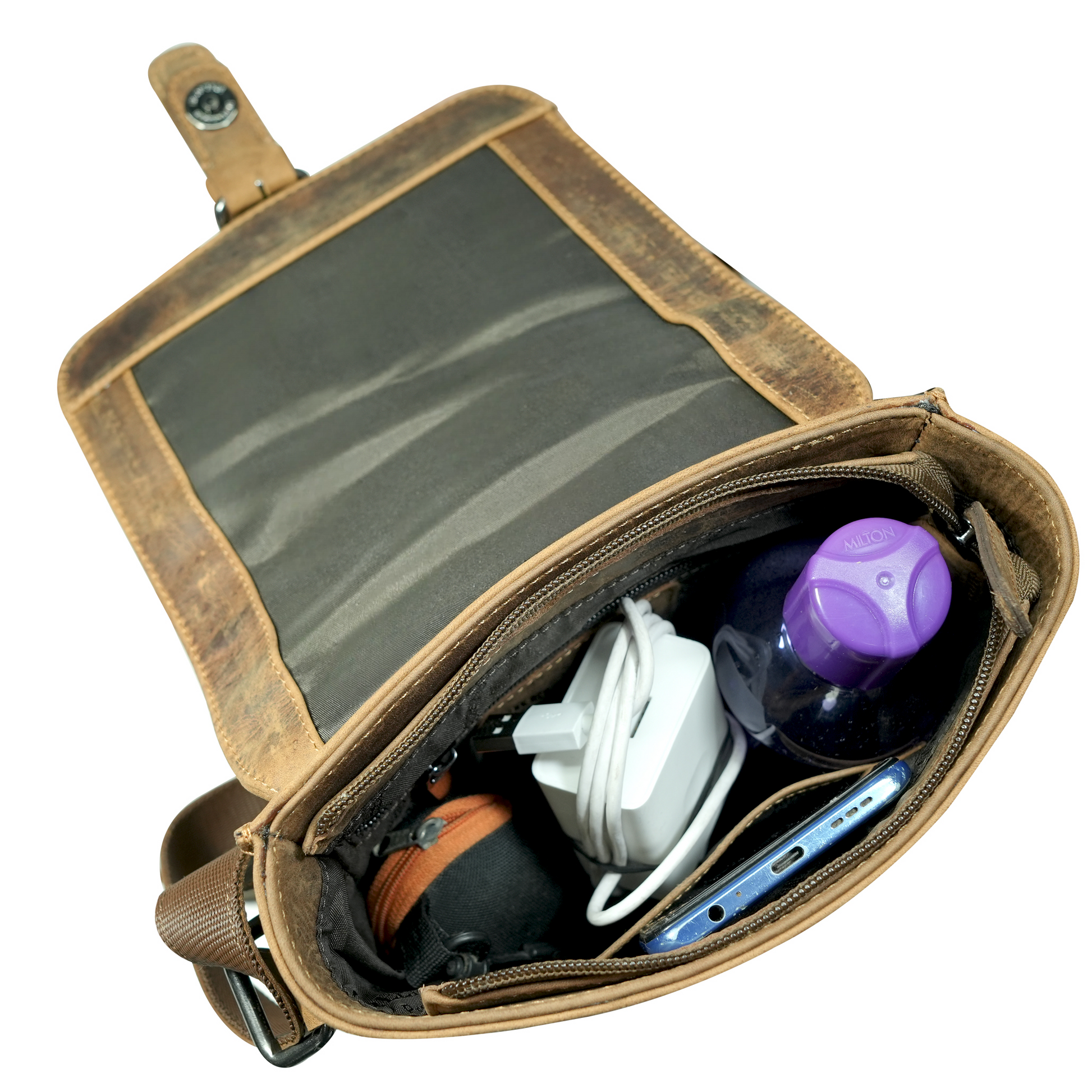 - Secure flap-over closure with buckle-style magnet