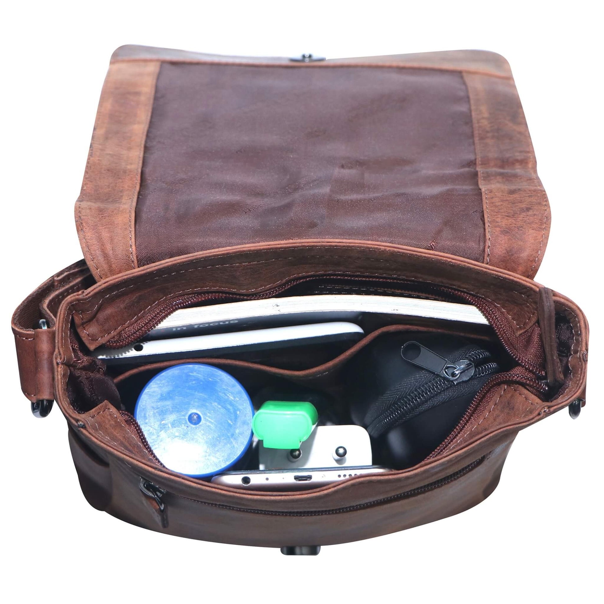 - Spacious split main zip compartment