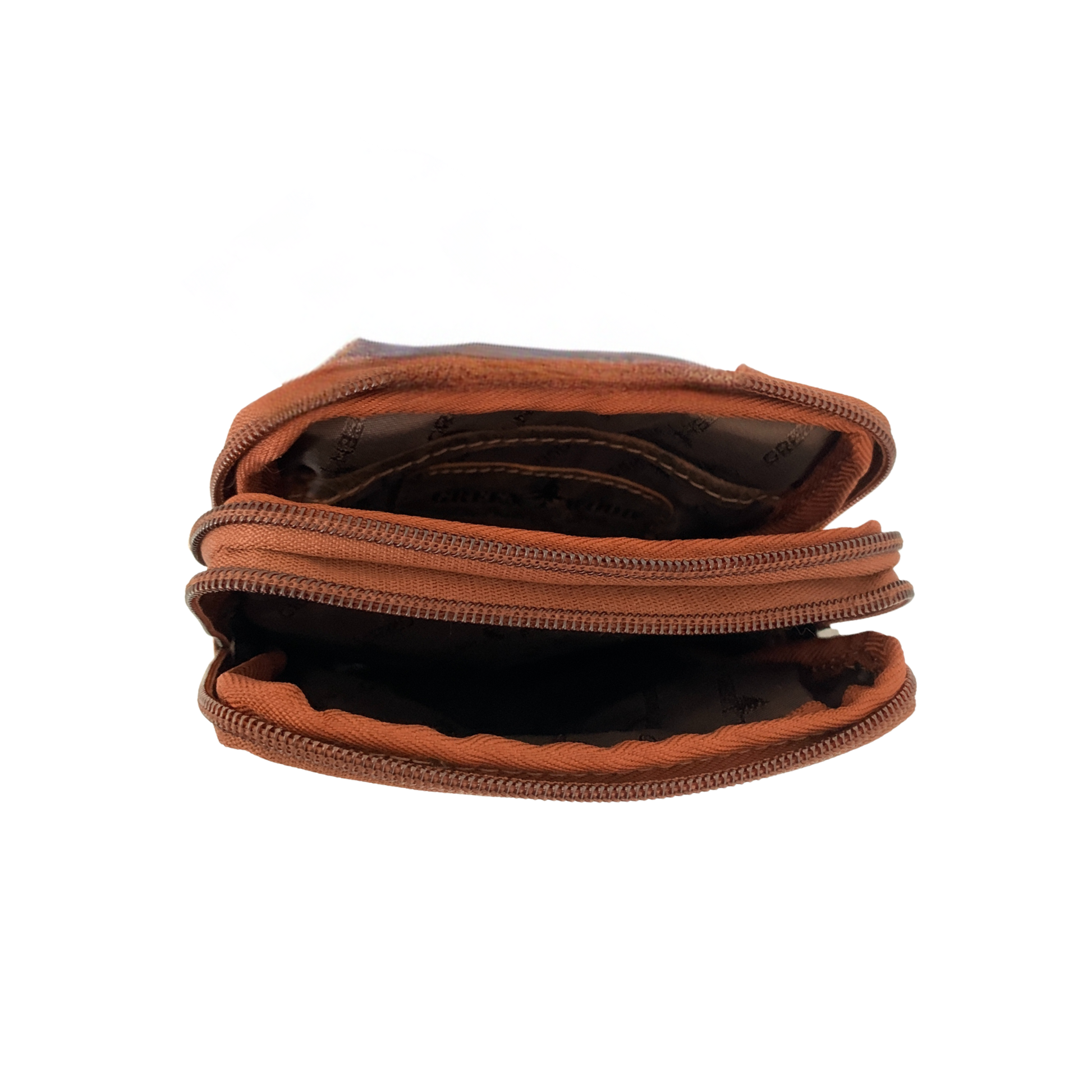 Compact crossbody sling made from premium cowhide oil pull-up leather in a versatile hunter tone. Perfect for hands-free carrying of everyday essentials, this durable bag develops unique character and patina over time, making it a lasting addition to your collection.