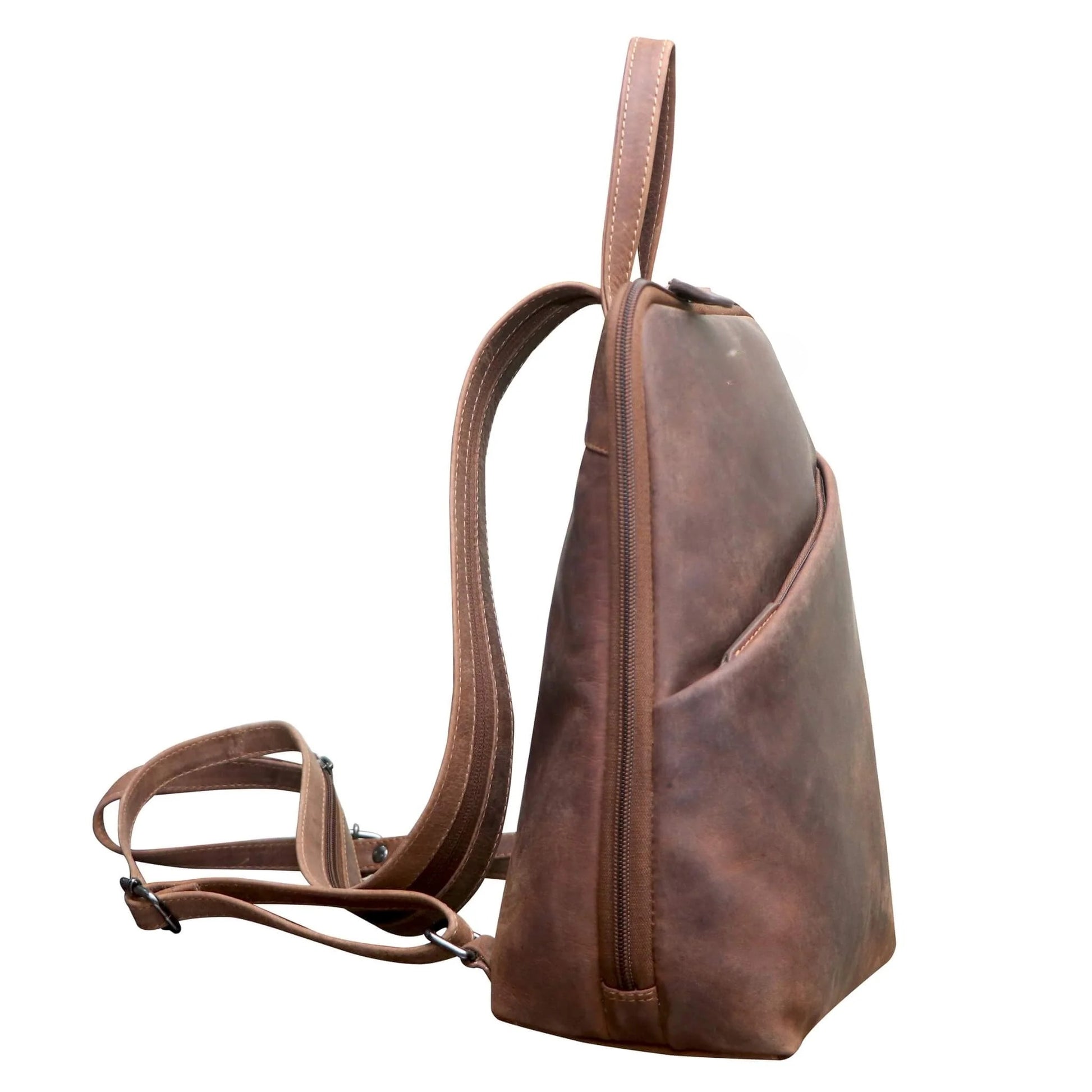 Crafted from genuine vintage-style leather, this compact backpack blends rugged charm with everyday functionality. With thoughtfully designed compartments, it keeps your essentials organised and easy to access, perfect for daily commutes or weekend strolls.