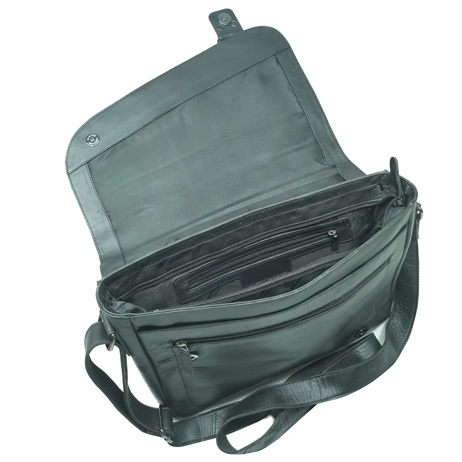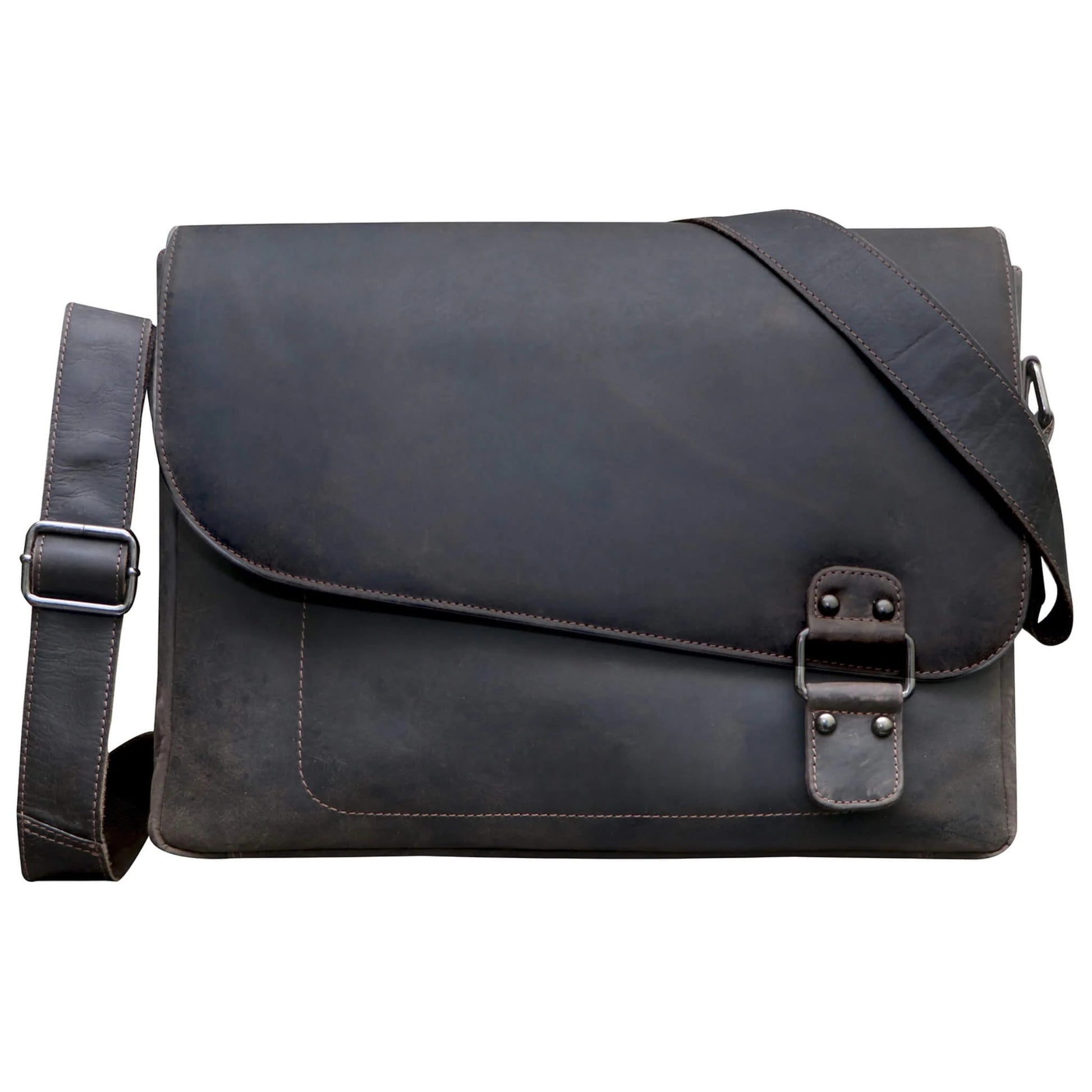 Handcrafted 'Martin' bag in genuine leather, designed to fit laptops up to 14 inches. Features multiple compartments for all essentials, an adjustable shoulder strap, and a magnetic closure. Each bag showcases unique natural leather characteristics, making it truly one-of-a-kind.
