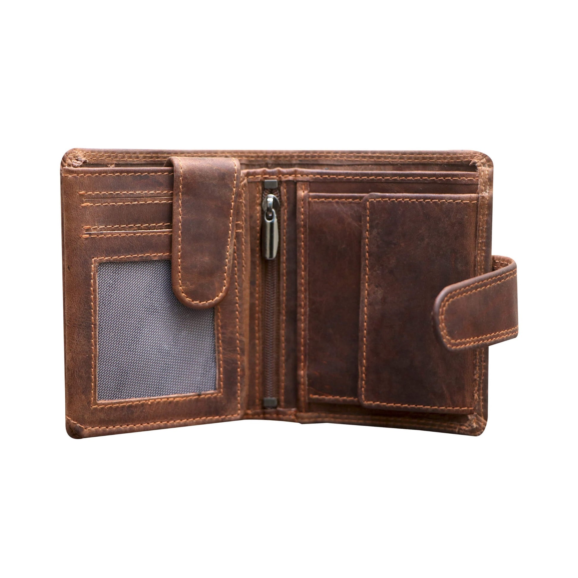 Premium hunter leather bifold wallet with multiple card slots and a rustic finish that develops character over time. Durable, stylish, and built to last.