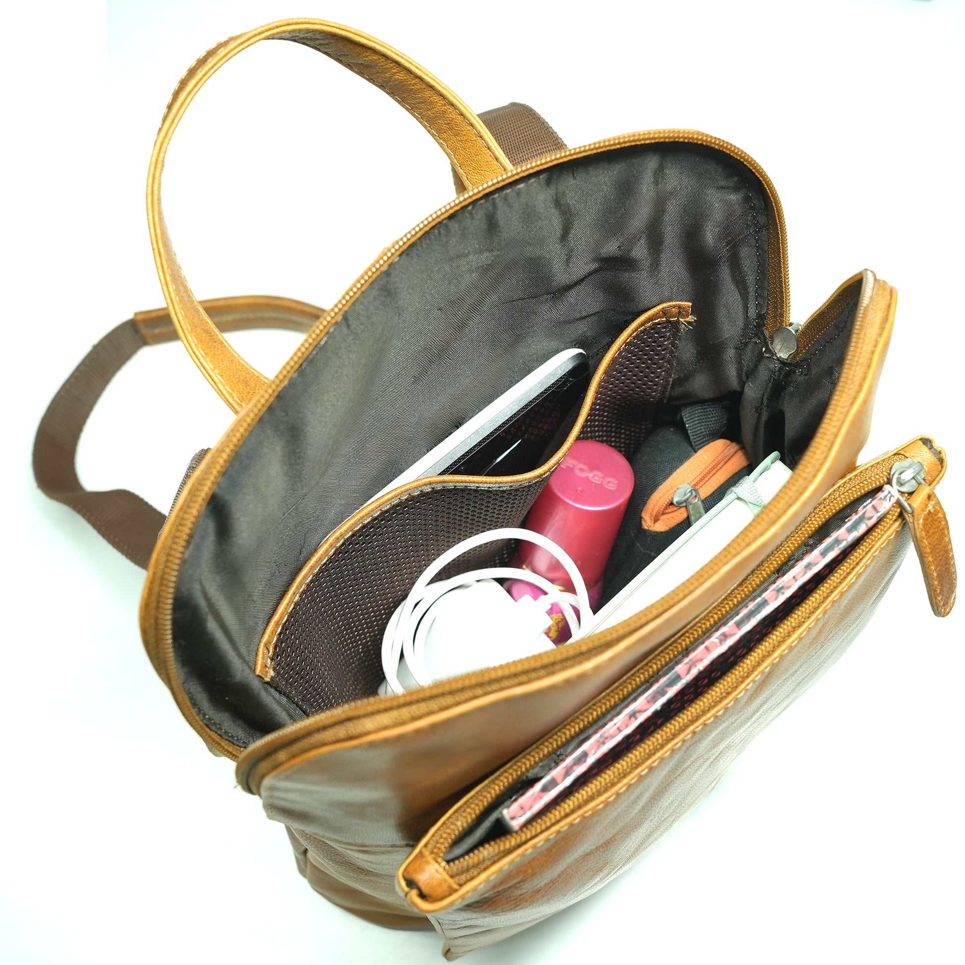 It features a front zip pocket and a spacious main compartment with inner pockets to keep your essentials like phone, wallet, and cosmetics organised. The adjustable straps make it easy to wear as a backpack or on one shoulder.
