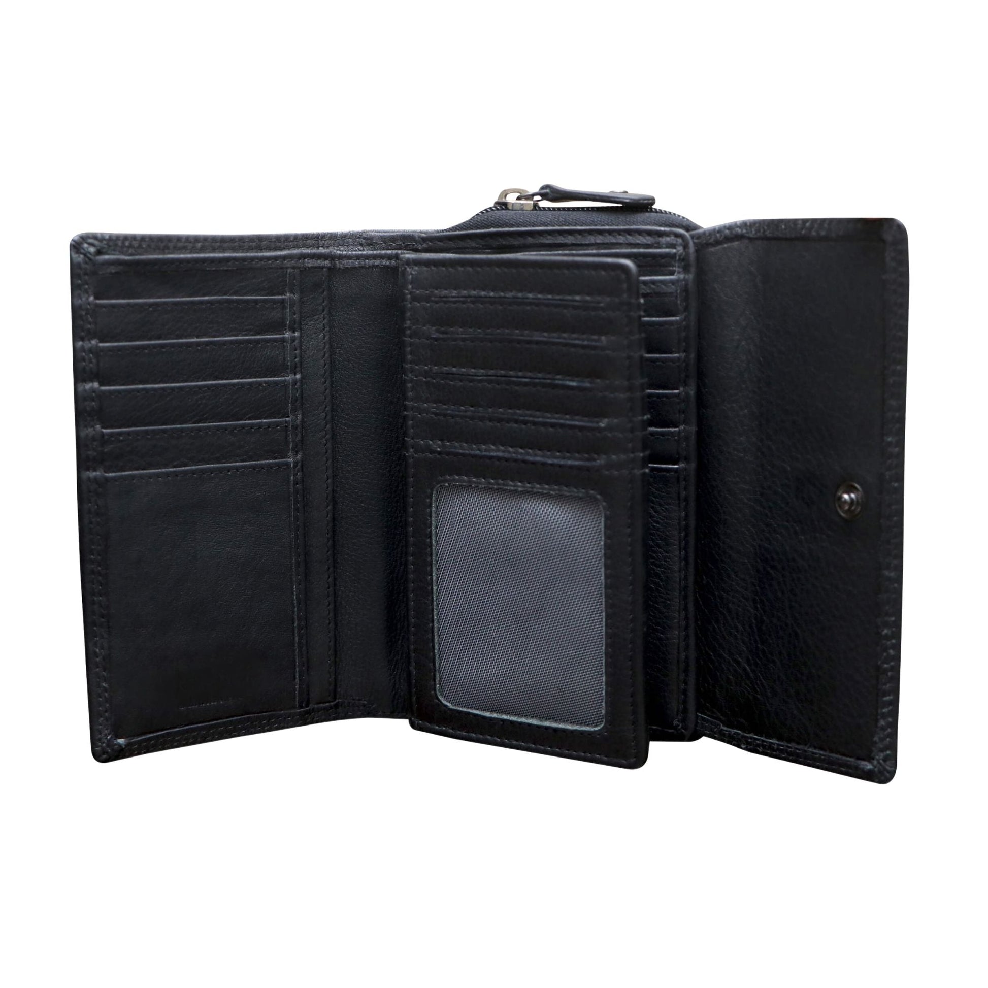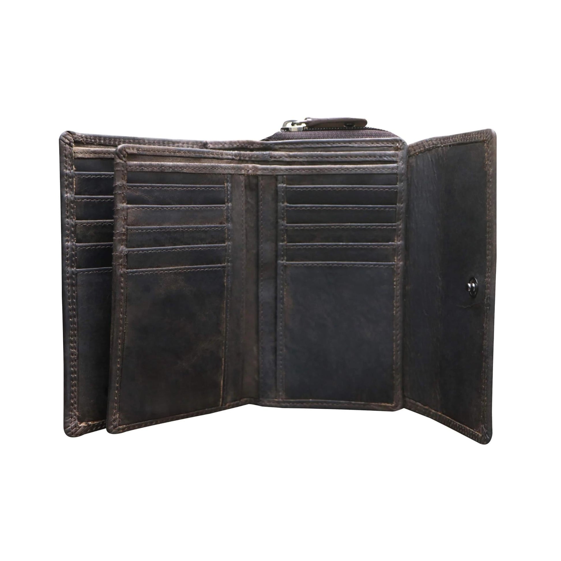 This genuine hunter leather ladies wallet keeps your cards, notes, and coins neatly organised in one stylish place. The durable flap design and quality construction make it a reliable everyday companion.